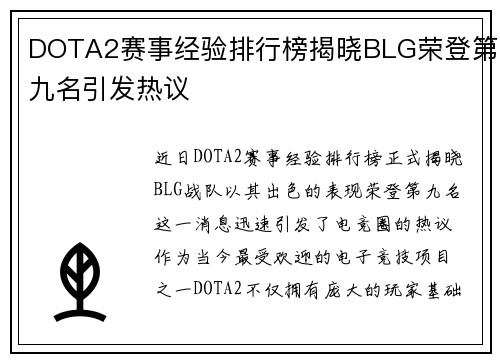 DOTA2赛事经验排行榜揭晓BLG荣登第九名引发热议