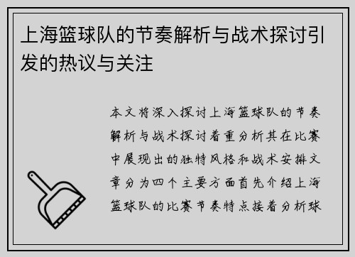 上海篮球队的节奏解析与战术探讨引发的热议与关注